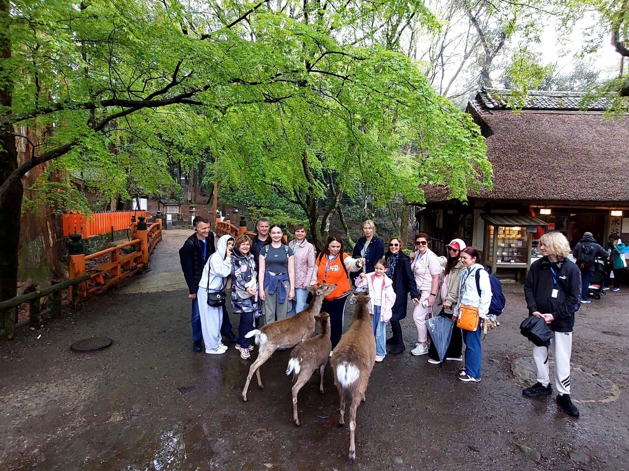 Кіото стало окремою главою нашої подорожі: прогулянки у кімоно, бамбуковий гай Арасіями, вечірній Гіон із сакурою над річкою Сіракава. У Нарі ми провели атмосферний дощовий день серед оленів і відвідали храм Тодайдзі.
